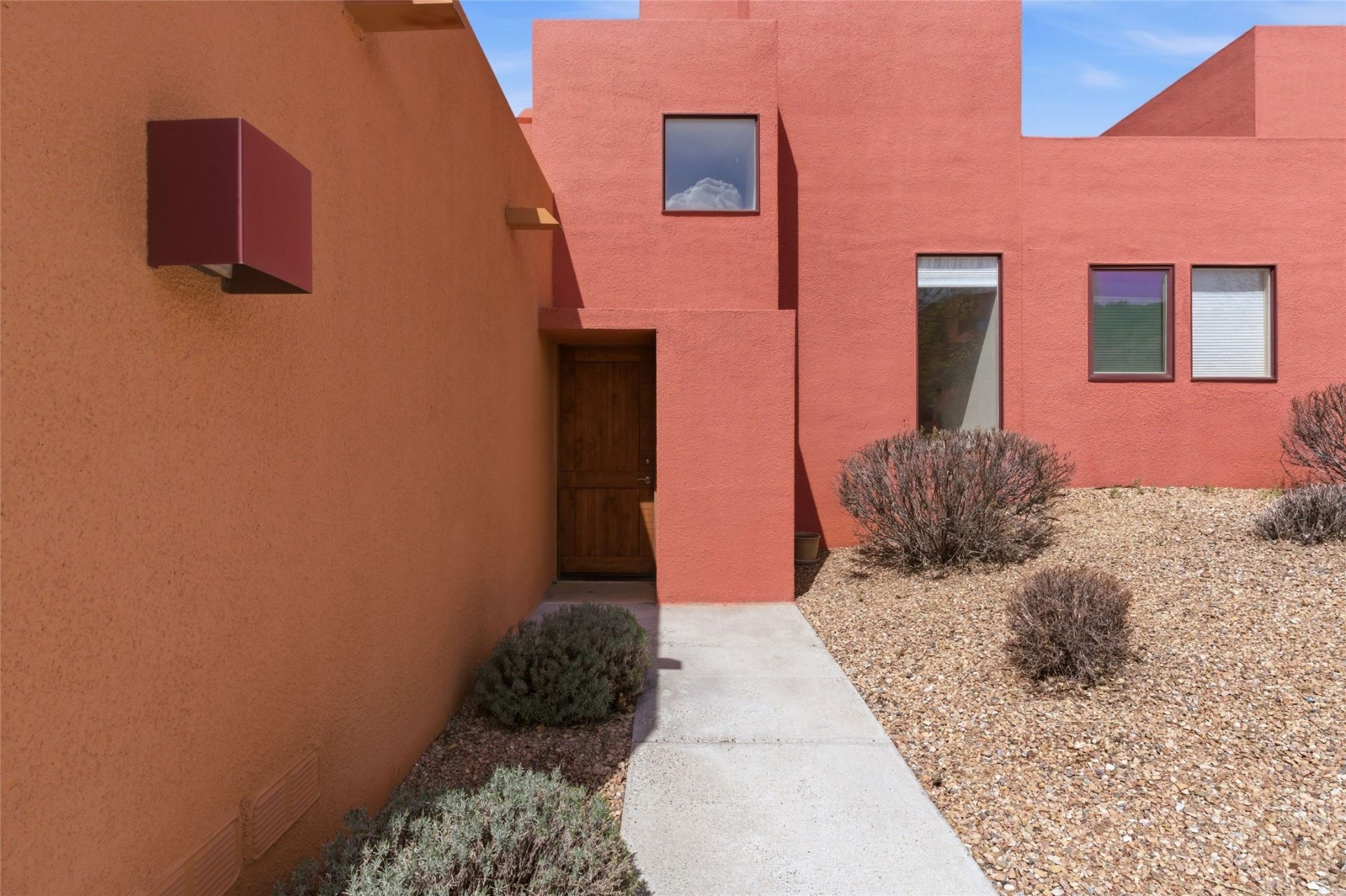 Ricardo Legoretta designed modern comfort in the desirable Northside community of Zocalo. This is a two bedroom, two and half bath, two story condominium less than ten minutes to downtown Santa Fe, shopping, museums and galleries. Built in 2005, the unit offers two generous master suites; one upstairs with a private balcony, the other downstairs, offering direct access out to the landscaped patio. Downstairs offers open living / entertaining spaces with a two sided fireplace separating the kitchen, living area and dining area. High ceilings over the dining room offer ample skylights tile floors and wood ceilings over the living room are just some of the architectural finishes expected in a Santa Fe home. The open space allows for flexible usage and placement of furniture ? depending on your lifestyle! Recent upgrades include a new oven / stove, a raised granite bathroom countertop in the upstairs suite, a utility sink in the garage, and two 14' Golden Rain trees in the back patio. Regarded as one of the most popular floor plans, this Barranca unit offers west facing views over the arroyo and into the tree-studded hillside. The finished two car garage offers direct entry into the home. Community amenities in Zocalo include two fitness facilities, a clubhouse, pool and spa.