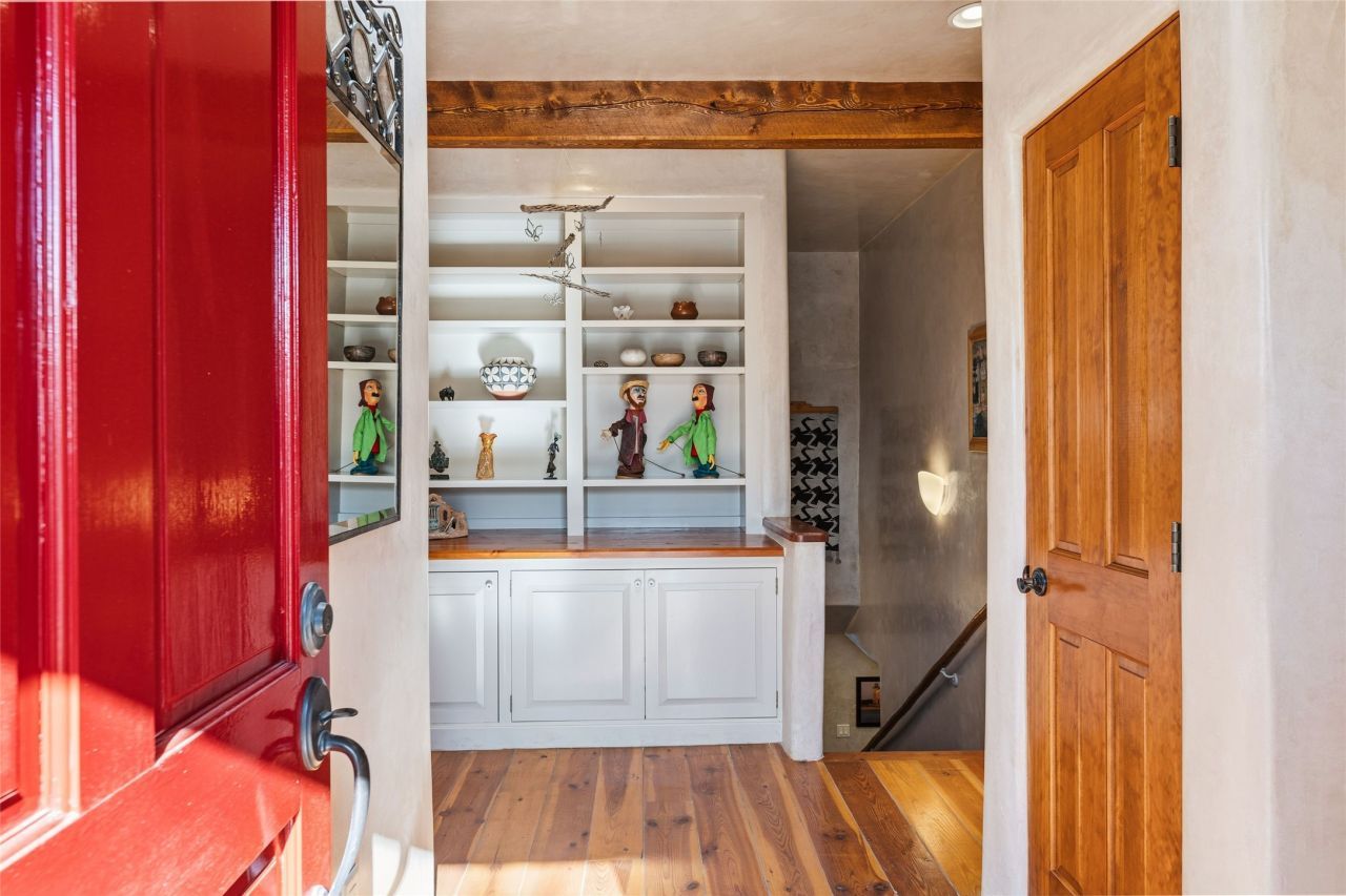 Hillside 3-bedroom 3.5 bath home plus 1-bedroom lower level guesthouse on almost 2.5 private acres close to Santa Fe River Park and the downtown Santa Fe Plaza. Gorgeous mountain and sunset views. This creative compound offers generous space with a 2,393 sq. ft. main residence plus a separate 1,036 + sq. ft. studio/guesthouse. Principal residence features an open floor plan with primary bedroom, sunroom and office on the main level. Chef's kitchen features a center island, skylight, recessed lighting, plentiful cabinetry and breakfast bar.Two guest bedrooms with a shared bath on the lower level. In addition, an attached guesthouse with kitchen and bath is perfect as artist studio, home office, visitor quarters, or potential rental income. Agriculturists and harvesters will enjoy the bounty from the established organic orchard and vegetable gardens with rainwater harvesting. 2 car heated garage. No HOA. This is a property which offers city conveniences with a rural ambience.