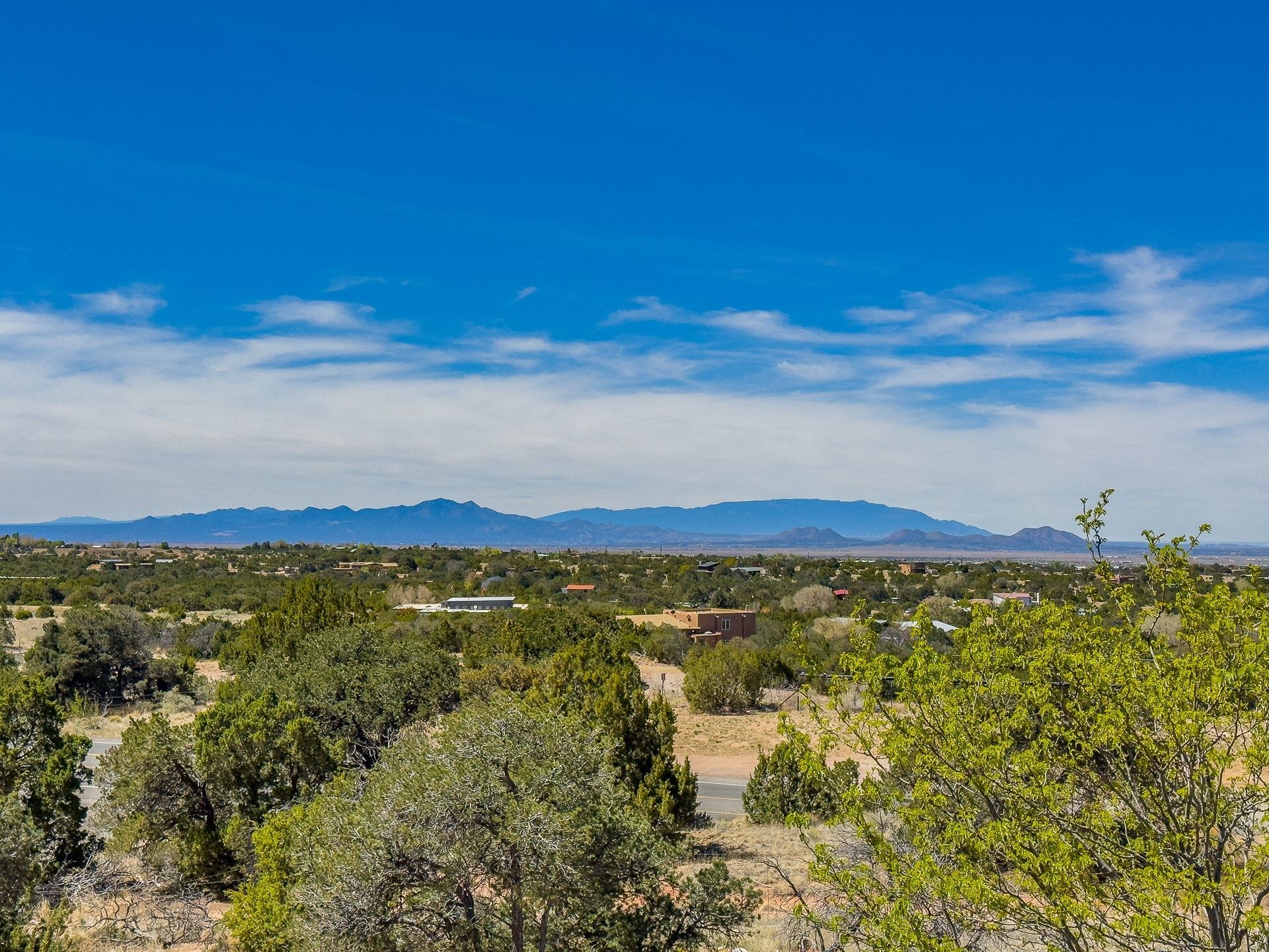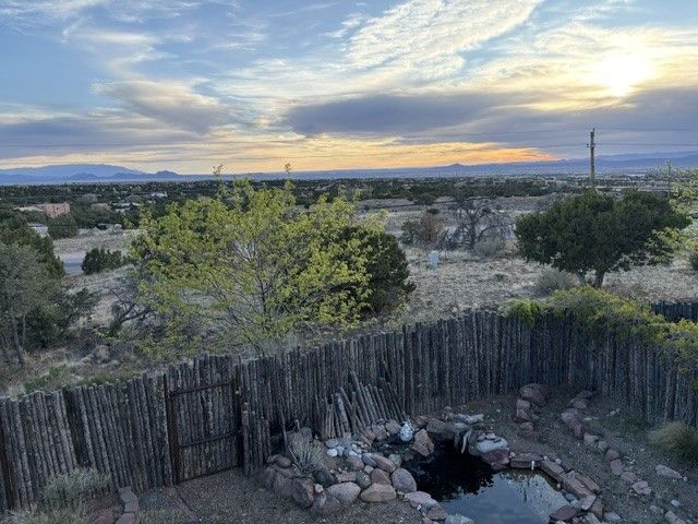 Experience the magic of Santa Fe living in this meticulously maintained, solar-powered home in the desirable Wood Gormley school district. Relax on your private rooftop deck, taking in breathtaking mountain views and iconic New Mexico sunsets. The fully fenced backyard, complete with a serene circulating pond, provides a quiet oasis for relaxation. Inside, enjoy a bright, open-concept design featuring 9-foot ceilings, fresh paint, new flooring, and a brand-new furnace for in-floor radiant heating. This award-winning, Energy Star Certified home combines premium efficiency with comfort, all on a quiet cul-de-sac perfectly positioned for easy access to downtown, shopping, and I-25.