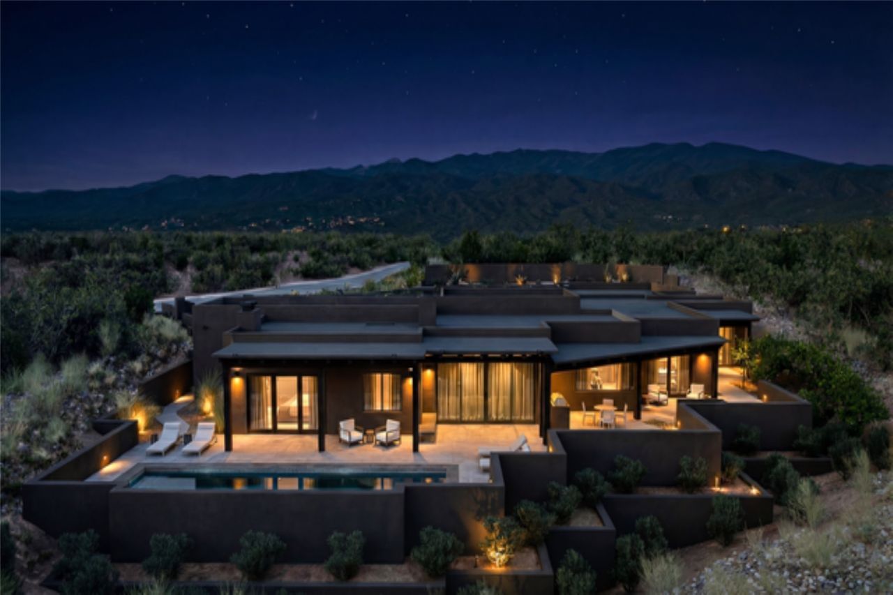 Experience the Ultimate Santa Fe lifestyle. Ready to build, with permit in hand, this To-Be-Built custom masterpiece by the award-winning Acacia Builders, excites with front row stunning views of the Sangre De Cristo Mountain. Located within the famed community of Monte Sereno, minutes to the Santa Fe Plaza and the world-renown Santa Fe Opera, this Monte Sereno home is one of the most captivating future residences in all of Santa Fe. Designed by renowned Santa Fe architect, Rad Acton, this stunning one-level home on a one-acre lot, offers an exquisite and rare four-bedroom floor plan tailored for indoor and outdoor living. The thoughtful design seamlessly flows and opens to over 1300 square feet of covered portals with a grilling station and an OPTIONAL pool, for both relaxation and the ultimate outdoor living experience. The walls of glass allow for the daily viewing of seasonal colors of the Aspen trees on the mountainside, the legendary sunsets and moonrises or step outside for stargazing under the dark skies of New Mexico. The smart design features a grand entertaining space with open dining and kitchen, a three-car garage, an office, four spacious bedroom suites and a second living room in the guest wing. The heart of the home is a gourmet kitchen with a corner window that Wows with a view! The chef in the household will be proud to host with a Wolf/Sub-Zero appliance package, a large island and full butler's pantry. The private primary retreat delights with expansive mountain views, a modern gas fireplace with concrete surround seating, and a sun-filled spa bathroom with a spacious walk-in closet. Additional exceptional features of this transitional style home with Santa Fe touches, include wood flooring, creamy plaster walls, wood beamed ceilings and multiple cozy fireplaces. With a building permit in place, the new owner can start construction quickly and save valuable time to focus on the fun of choosing colors & finishes on their dream home. All renderings are shown with furniture, art, lighting and rugs that can be purchased or modified for your lifestyle with the interior design team at Reverie3D who can offer a turn key move-in ready experience. The pool is not included in the listing price, though possible as an additional upgrade.