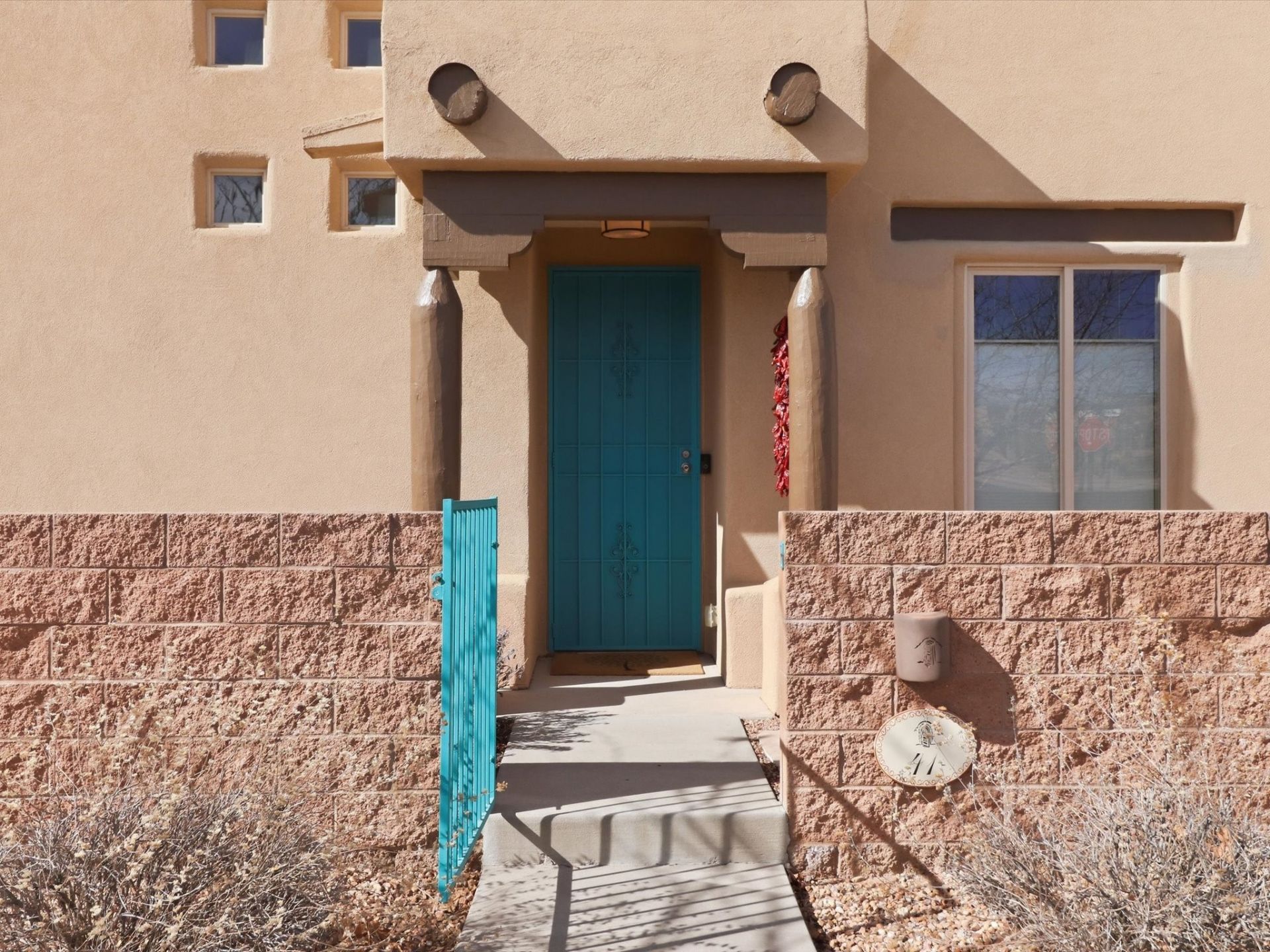 Elevate your lifestyle with this exceptional sun filled end-unit townhome in the desirable Rancho Viejo community. Combine modern comforts and Santa Fe charm in this elegant residence of +/-1700 sq. ft. thoughtfully designed living space with a versatile 3BR and 2 1/2 Bath. Step into a low maintenance wrap around courtyard on a flagstone patio with a sliding door to the tiled dining area. In the kitchen, you'll experience updated modern amenities including a new appliance package (2025) and a Kohler black stainless steel farmhouse sink. Convenient soft close cabinetry and Rev a shelf cabinet drawers for easy access. Enjoy filtered drinking water with the RO water filtration system. The living room is centered around a traditional Kiva gas fireplace and dramatic two-story ceiling adorned with classic vigas and clerestory windows. An efficient HVAC system with a Google Nest control panel allows remote monitoring while away or on the go. In-home and remote monitoring security features include Simplisafe security system and video ring doorbell. Follow the tiled hallway to the flex room appointed as an additional bedroom, office or media room with courtyard view and entry. Powder room (1/2 bath) is steps away. Upstairs, the primary bedroom ensuite offers a private retreat complete with sliding door to a generous deck to enjoy the remarkably quiet neighborhood with views to the East, South, and West. Your walk-in closet is set adjacent to the double vanity, bathtub and water closet. A loft area and second bedroom with reading nook and full bath completes the upper floor. All rooms adorned with custom Graber cellular shades. Entire interior repainted (2023) with custom accent walls. Solid wood door package complements the warm color palette. Additional upgrades include dimmer switches in every room with new flush mount overhead lighting and replaced lighting fixtures throughout. Ample storage with ground floor closet below stairway, double door linen closet off of loft and custom floor to ceiling cabinets in the attached 2-car garage. With Santa Fe's 320+ days of sunshine a year, the surrounding miles and miles of (paved) walking/biking trails are the perfect place for your sunrise and sunset strolls.